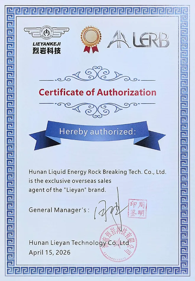 Hunan Liquid Energy Rock Breaking Tech. Co., Ltd. is the exclusive authorized global distributor for Hunan Lieyan Technology Co., Ltd. through a long-standing and stable strategic partnership. The company is dedicated to the international sales and comprehensive service support of Lieyankeji’s product portfolio. With a professional team of international business and technical experts, Hunan Liquid Energy Rock Breaking Tech. Co., Ltd. provides one-stop solutions, including pre-sales technical support, project management, spare parts logistics, and after-sales coordination.
