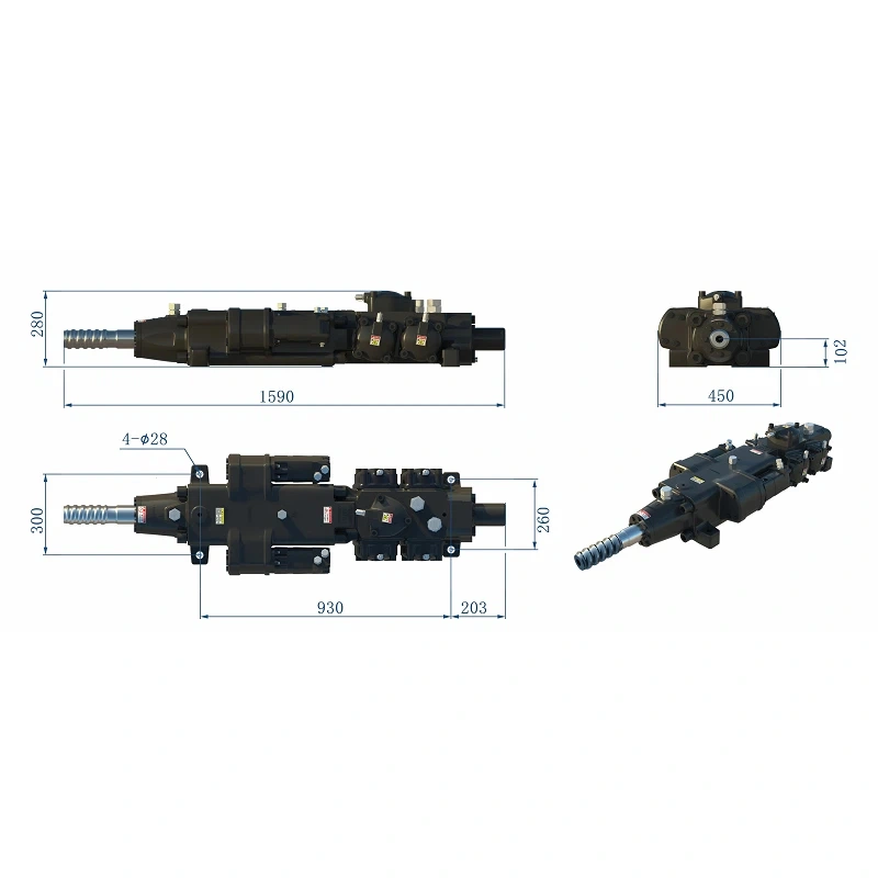 The LD30S hydraulic drifter is a high-performance heavy-duty drifter with five-accumulator configuration, equipped with two high-pressure accumulators, two low-pressure accumulators, and a buffer accumulator. This multi-stage accumulator drifter is optimized for both surface hydraulic drill rigs in open-pit mining and specialized underground deep-hole drilling platforms.