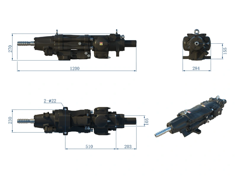 The LEM16E hydraulic drifter is a high-frequency impact hydraulic drifter engineered with an improved rotation mechanism for enhanced torque stability. The drifter unit features an integrated internal oil-mist lubrication system.
